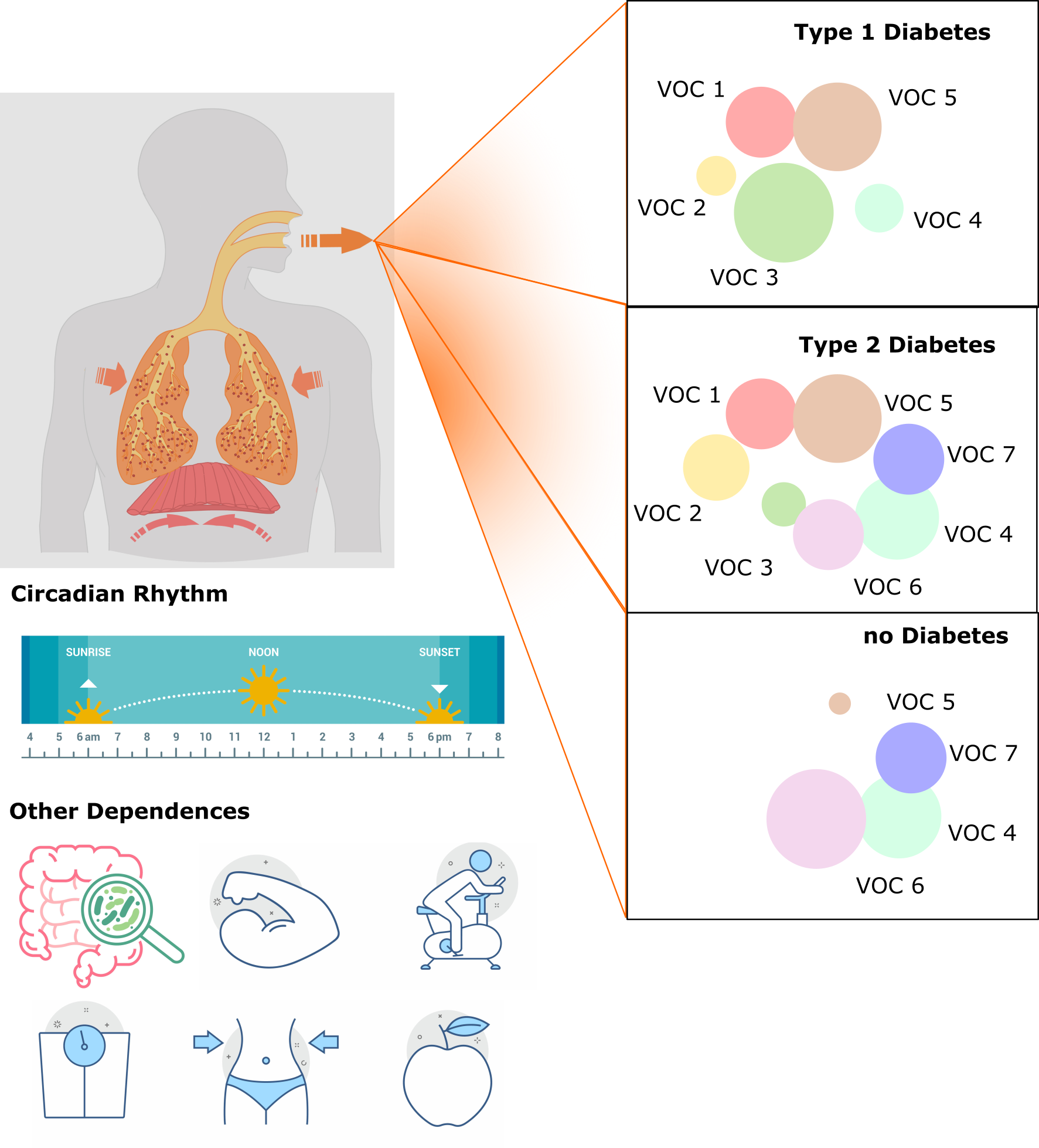 We aim to identify distinct VOC patterns and investigate their associations with blood glucose levels, body composition, circadian rhythms, and microbiota profiles — both in individuals with diabetes and in healthy controls. Our broader goal is to contribute to the development of non-invasive, real-time diagnostic tools for personalized metabolic monitoring.